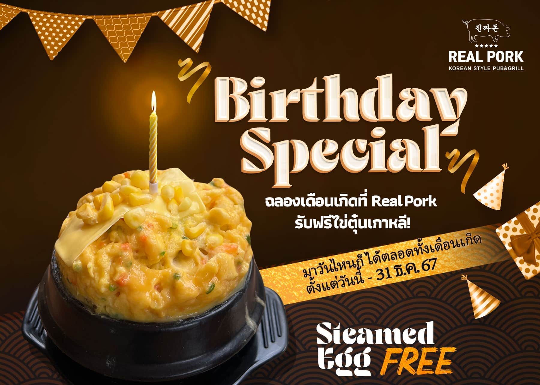Get free Korean steamed eggs. Make your special occasion more special. Just come to celebrate at Real Pork during your birthday month and show your ID card to get free! Korean steamed egg, soft and smooth, so delicious.